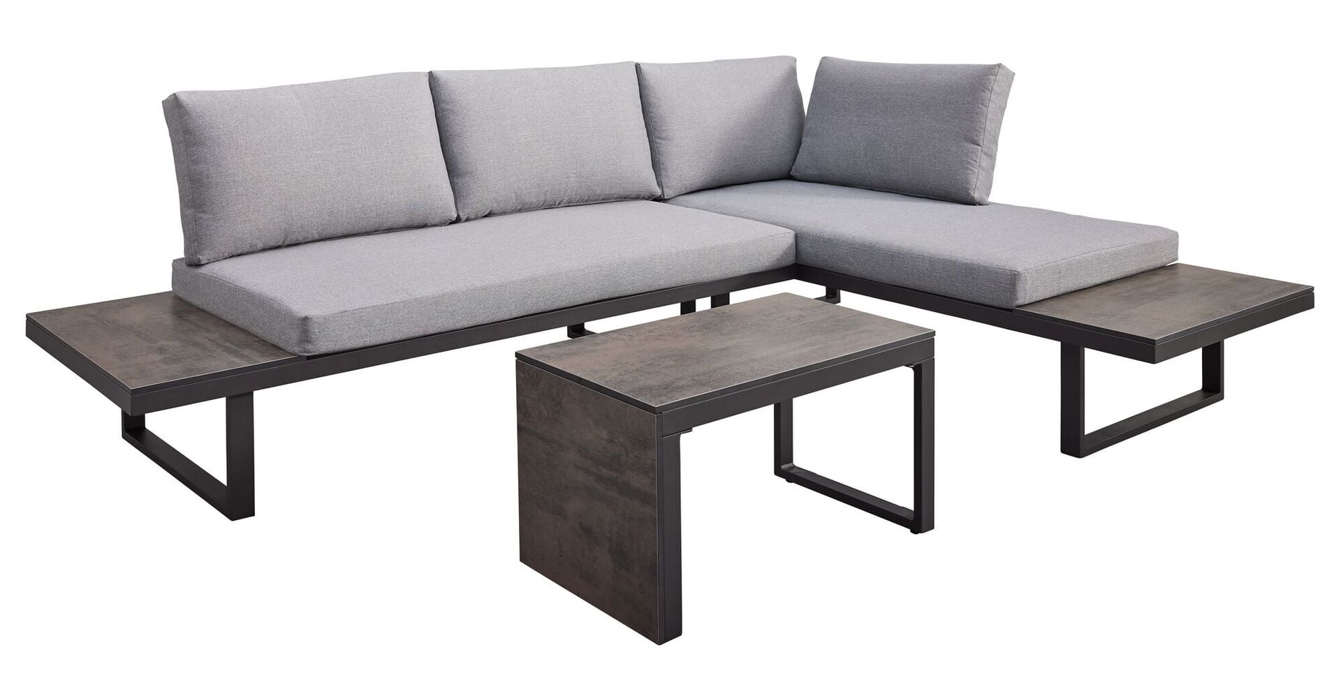 – Farbe: anthazit/braun, – Material: Gestell: Aluminium / Bezug: 100% Polyester / Polsterung: Schaumstoff / Tischplatten: HPL, – Produktart: Lounge