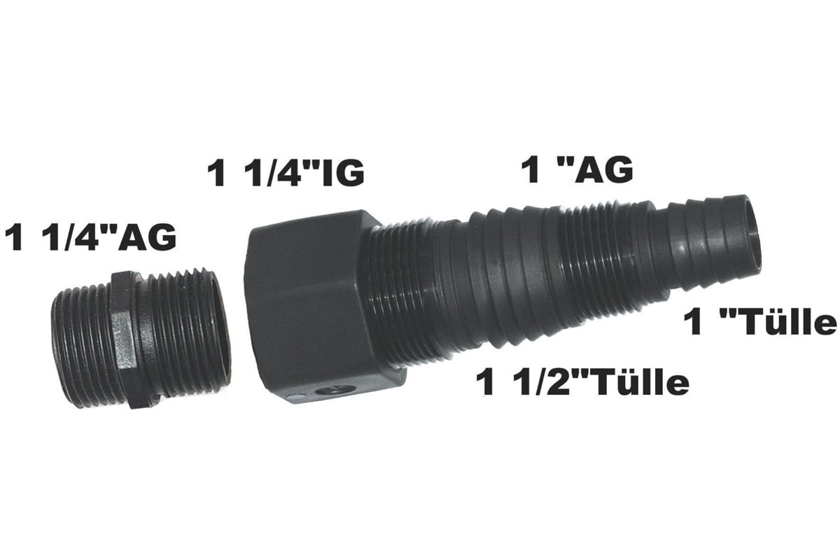 1 1/4″ IG x 1 1/2″ Tülle x 1″ AG x 1″ Tülle
