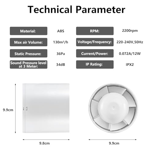 Milduall Kanal Rohrventilator 100mm, Inline-Abluftventilator Kanalventilator Rauchabzug Rohrlüfter 130m³/h, 34dB Leise für Bad Küche Gewächshaus Zelt Garage