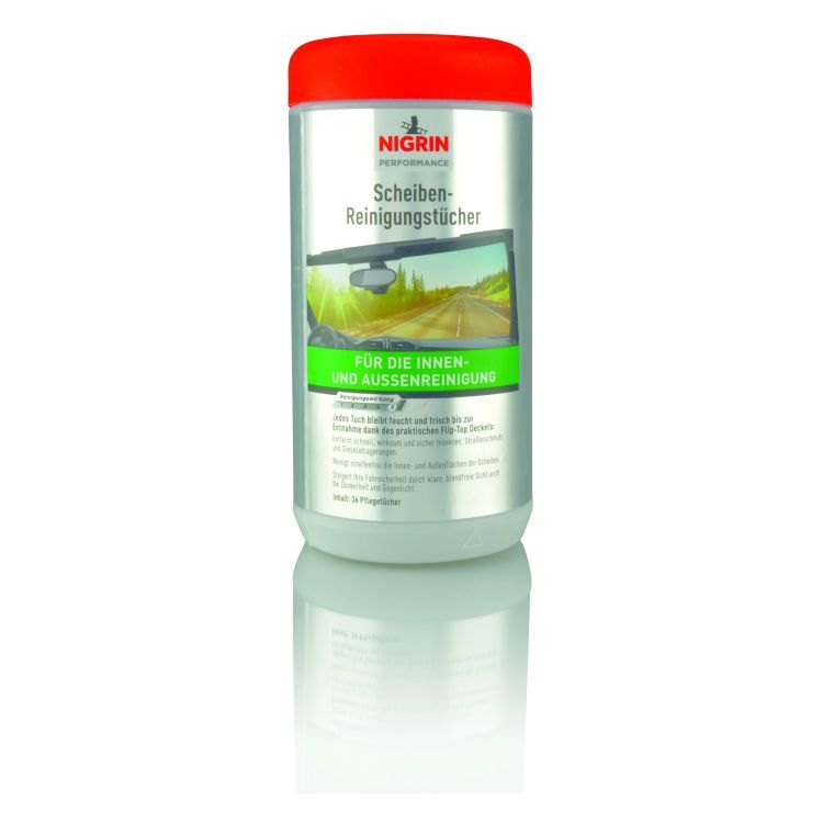 – Tuch entnehmen und Glasflächen streifenfrei abreiben