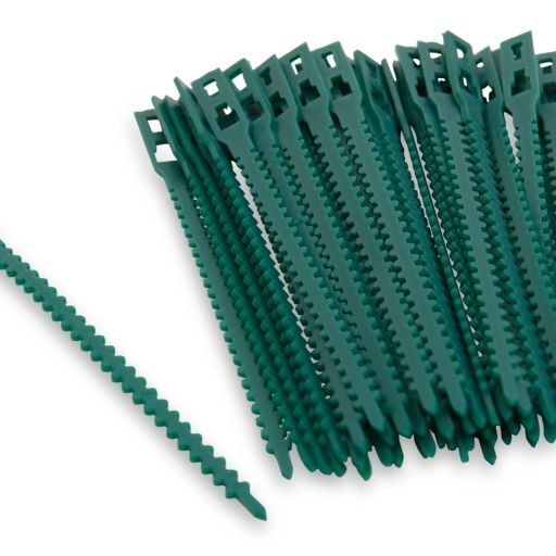 Verstellbarer Pflanzenbinder aus Kunststoff.