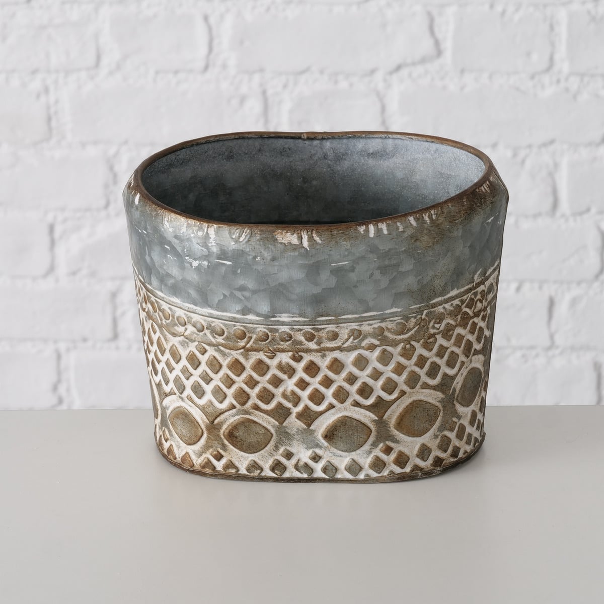 – Breite: 23, – Farbe: Grau, – Gewicht: 447, – Höhe: 20, – Länge: 31, – Material: Metall, – Produktart: Pflanztopf, – Serie: Power Flowers