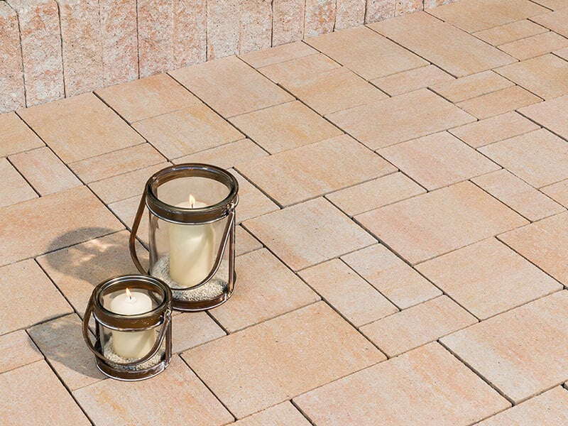 Viel Spielraum für Ihre Kombinationsideen: das Loreto Pflaster in drei Farben und Formaten.
