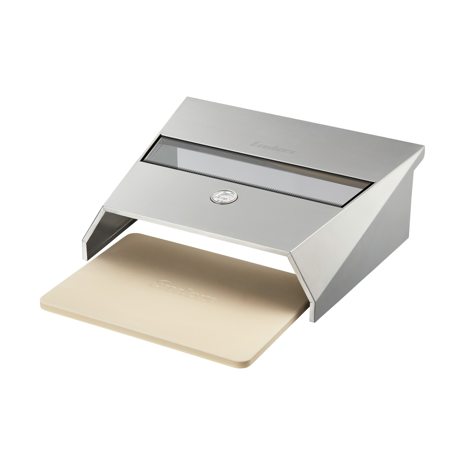 Undercover Pizzeria Das Pizzacover von Enders Das PIZZACOVER TURBO ist die perfekte Ergänzung für deinen COLORADO oder MONROE PRO mit Backburner. Mit dem doppelwandigen Edelstahldesign und einem vollflächigen, rechteckigen Pizzastein holst du dir echtes Pizzeria-Feeling auf den Teller. Ein weiteres Highlight, übrigens auch ein absolutes Novum, ist das große Sichtfenster auf der Oberseite des Covers, das dir eine bequeme Überwachung des Turbo-Backvorgangs erlaubt Zur Funktion: Das PIZZACOVER TURBO fängt die ultraheiße Hitze des Infrarot-Backburners ein und leitet sie geschickt entlang seiner Haube, um die perfekte Oberhitze zu erzeugen. Die zusätzliche Hitze der Hauptbrenner führt zur idealen Wärmeverteilung unter dem PIZZACOVER TURBO – das Geheimnis für ein blitzschnelles, perfekt gebackenes Pizzaerlebnis Das Pizzacover ist passend für die Monroe Pro Serie und Colorado Serie mit Infrarotbrenner/Backburner
