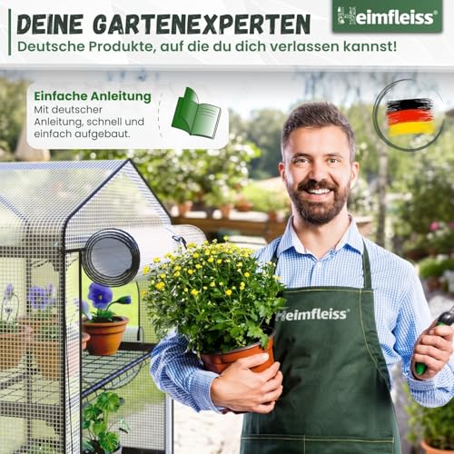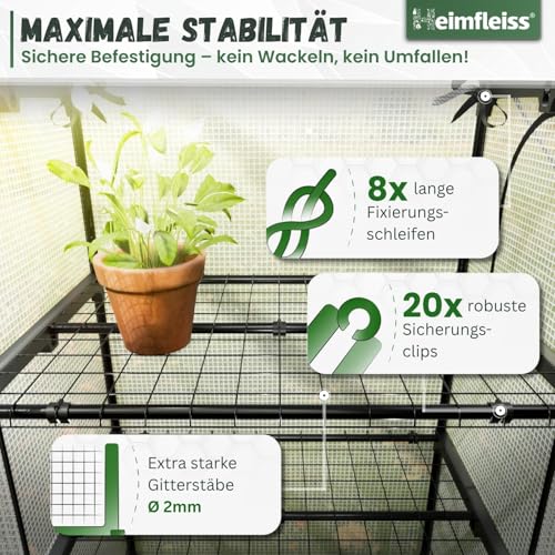 Heimfleiss® Foliengewächshaus mit 4 Ebenen | Balkon Gewächshaus klein | Garten Anzuchthaus Sturm- & Winterfest | Pflanzenzelt aus Folie & Metallgestell |...