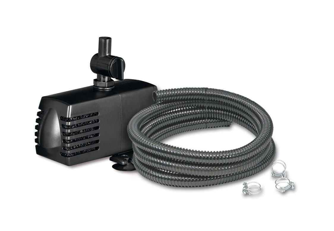 Set für Wasserspeier inklusive Pumpe 900 l/h, Schlauch 3 m mit Schlauchklemmen.