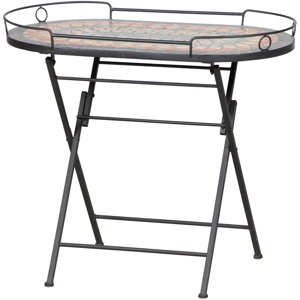 Serviertisch Prato 41×67,5×60 cm, Gestell Stahl pulverbeschichtet in matt schwarz, Fläche aus Keramik in Mosaikoptik