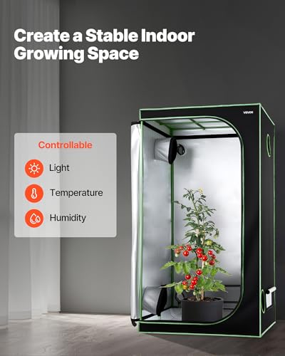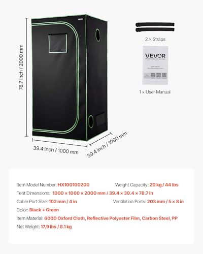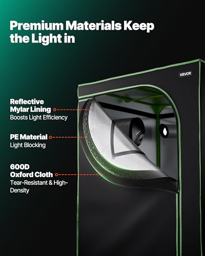VEVOR Growzelt, 100x100x200 cm, Growbox 600D hochreflektierendes Mylar, Indoor-Pflanzenzelt mit Beobachtungsfenster, Bodenwanne & Reißverschluss, Gewächshaus...