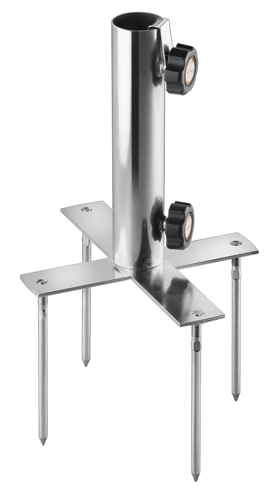 Er besteht aus galvanisch verzinktem Stahl und ist daher sehr stabilund witterungsbeständig. Er ist für Unterstöcke 25 – 38 mm Ø, fürSchirme bis 300 cm Ø geeignet.