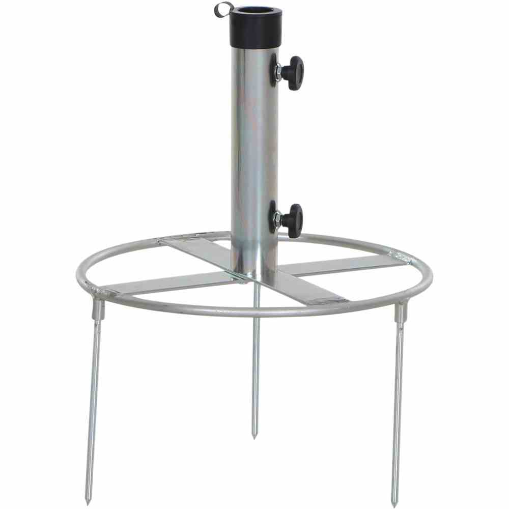 Rasendorn Universal, passend für Schirmstöcke Ø48/38/32 mm, aus Stahl verzinkt in silber, Rohr aus Stahl in silber, mit 2 Feststellschrauben, 3 Erdnägel zum Fixieren im Boden