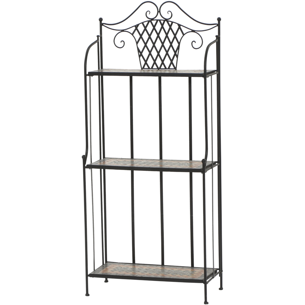 Regal Prato, 62x29x142 cm, Gestell aus Stahl pulverbeschichtet in matt schwarz, Flächen aus Keramik in Mosaikoptik, mit weißen, rutschhemmenden Kunststoffgleitern