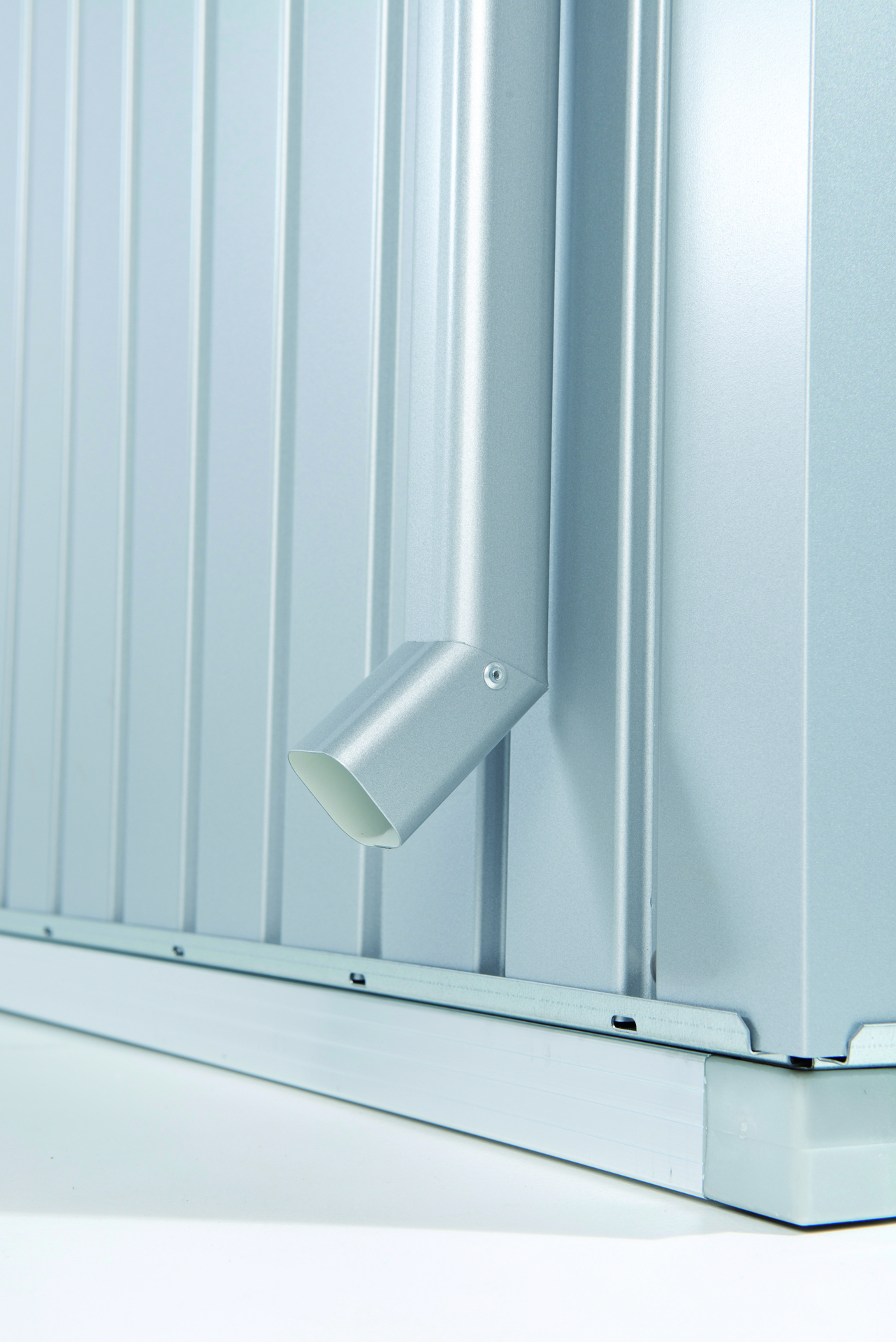Das Regenfallrohr Set für Ihr Biohort Gartenhaus leitet das Regenwasser vom Dach ab. Dadurch werden Ausschwemmungen von Gehwegplatten sowie eine überdurchschnittlich hohe Wasseransammlung bei Regen rund um das Gerätehaus verringert. Das Regenfallrohr Set für Ihr Gerätehaus beinhaltet 2 Stück Regenfallrohre mit je einem Auslaufbogen, um die Abflussrichtung noch besser steuern zu können. Es besteht aus feuerverzinktem, polyamid-einbrennlackiertem Stahlblech. Das Befestigungsmaterial wird mitgeliefert.