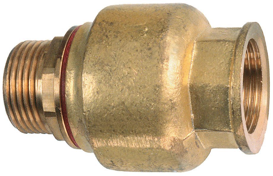 Messing, IG 1 1/4″ + AG 1 1/4″, Schließkegel mit Gummiformdichtung (eine speziell an den Kegel angeformte Dichtung). Das Rückschlafventil gibt den Durchfluss in einer Richtung frei und sperrt in Gegenrichtung ab. Es wird in Verbindung mit Pumpen-Aggregaten eingesetzt und verhindert, dass beim Abschalten der Pumpe das Wasser zurück in den Brunnen läuft und beim Einschalten der Pumpe erneut wieder angesaugt werden muss