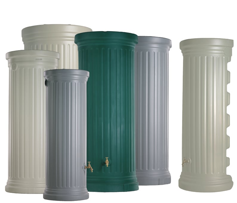 Das extravagante Design dieses Regenwasser-Sammelbehälters erinnert an die Säulen der Antike. Die altbewährte Form war, aufgrund ihrer Stabilität, schon damals ein beliebtes Bauelement und hat bis heute nichts an ästetischem Wert verloren. Ein wesentlicher Vorteil dieses stilvollen Behälters besteht darin, dass Sie selbst entscheiden können, auf welcher Seite Sie den Zulaufhahn positionieren möchten. Dazu bohren Sie einfach ein Loch in das Gehäuse.
