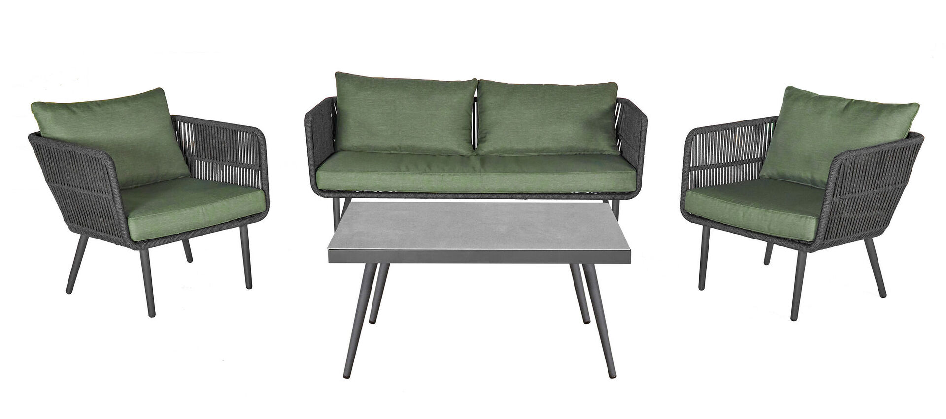 Das Gestell aus robustem Stahl und Rope sorgt für hohe Stabilität und Langlebigkeit, während die edle Tischplatte aus Keramik-Glas nicht nur optisch begeistert, sondern auch pflegeleicht ist. Dank der bequemen Sitz- und Rückenkissen genießen Sie maximalen Komfort – perfekt für lange Sommerabende mit Familie oder Freunden.