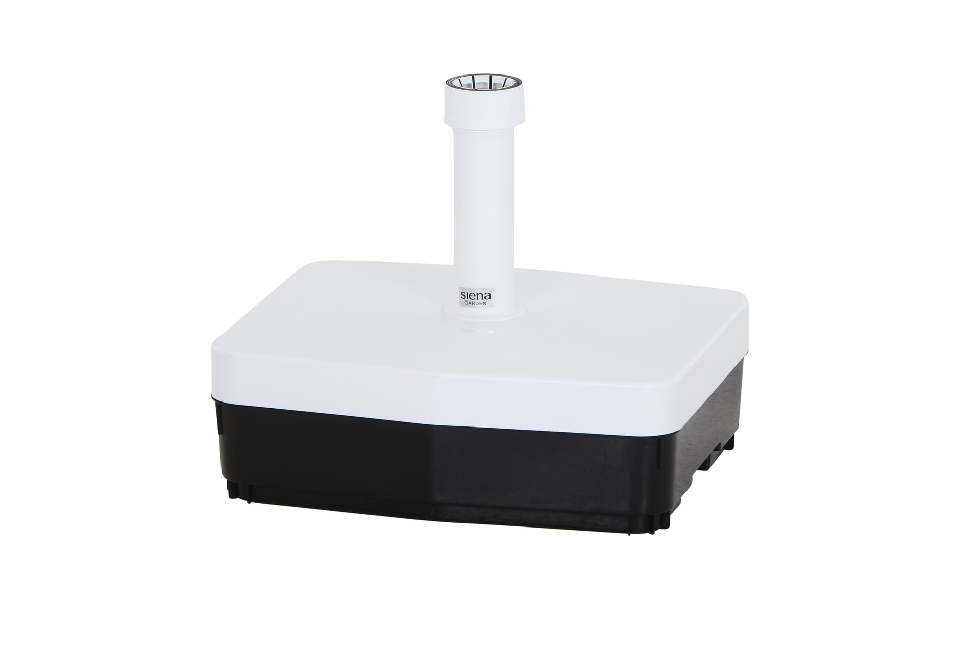 Schirmständer Kunststoff, 45 kg, 49x41x16 cm, aus Kunststoff in weiß, Rohr aus Kunststoff in weiß, geeignet für Schirmstock-Ø 21-54 mm, befüllbar mit Sand, inkl. Rollen, mit Griff, mit Rolle und Handmulde