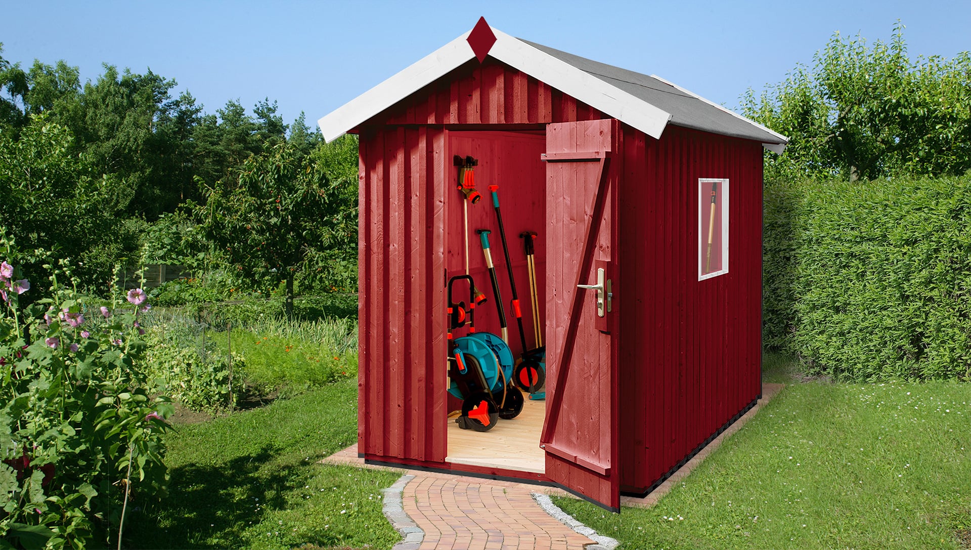 weka Schwedenhaus, Wand: 2 x 16 mm starke aufgedoppelte Schalung, sägerauhe Schwedenoptik Außenmaß: 162×170 cm (BxT) Gesamthöhe: 220 cm Seitenwandhöhe: 185 cm Bauweise: Elementbauweise Boden: 19 mm Massivholzboden Dach: 19 mm Massivholz-Satteldach Dachüberstände: vorn und seitlich 20 cm Fenster: 1 Fenster im Wandelement Tür: breite Einzeltür 76×176 cm (BxH) lichtes Maß Farbvariante: naturbelassen Das WEKA Schwedenhaus Gr. 1 lässt die Herzen der Schwedenfans höher schlagen. Auf Grund seiner Elementbauweise ist der Aufbau für das 162 x 170 cm (BxT) Gartenhäusschen problemlos machbar und bietet genügend Stauraum für Ihre Gartenutensilien oder Fahrräder. Für die nötige Stabilität des hochwertigen naturbelassenen Schwedenhaus sorgen der 19 mm stabile Massivholzboden, die 16 mm starke Deckelschalung als Wand und das 19 mm starke Massivholz-Satteldach. Schweden steht für die Affinität zur Natur und einem relaxten Lebensstil. Mit diesem Gartenhaus in traditioneller Optik holen Sie sich ein Stück dieser Lebensart in Ihren Garten nach Hause und Schweden scheint gar nicht mehr so weit weg zu sein.
