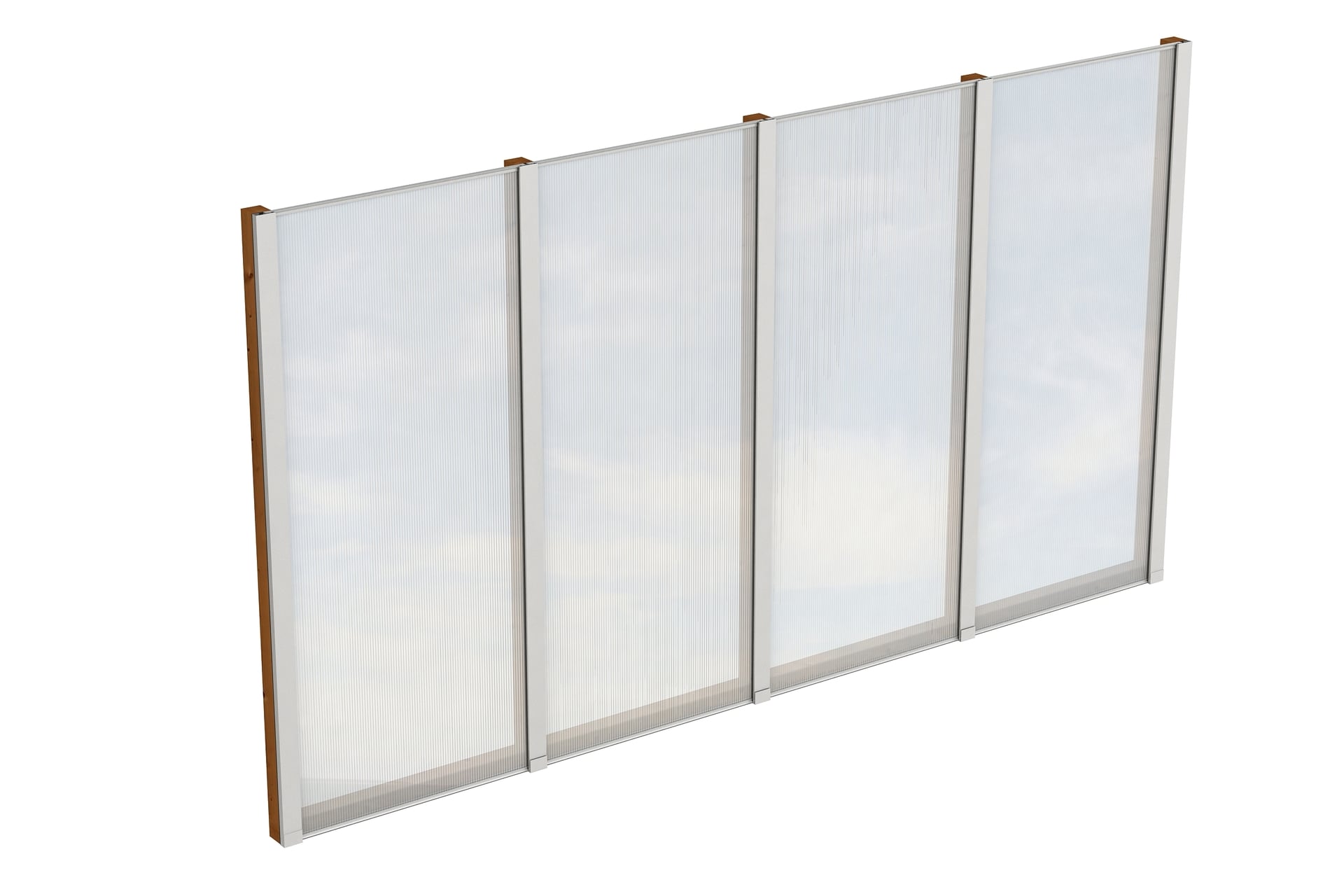 Die praktische SKAN HOLZ Seitenwand aus Konstruktionsvollholz mit 10 mm starken Doppelstegplatten aus Polycarbonat eignet sich für freistehende SKAN HOLZ Terrassenüberdachungen aus Leimholz mit einer Tiefe von 400cm und 389cm.