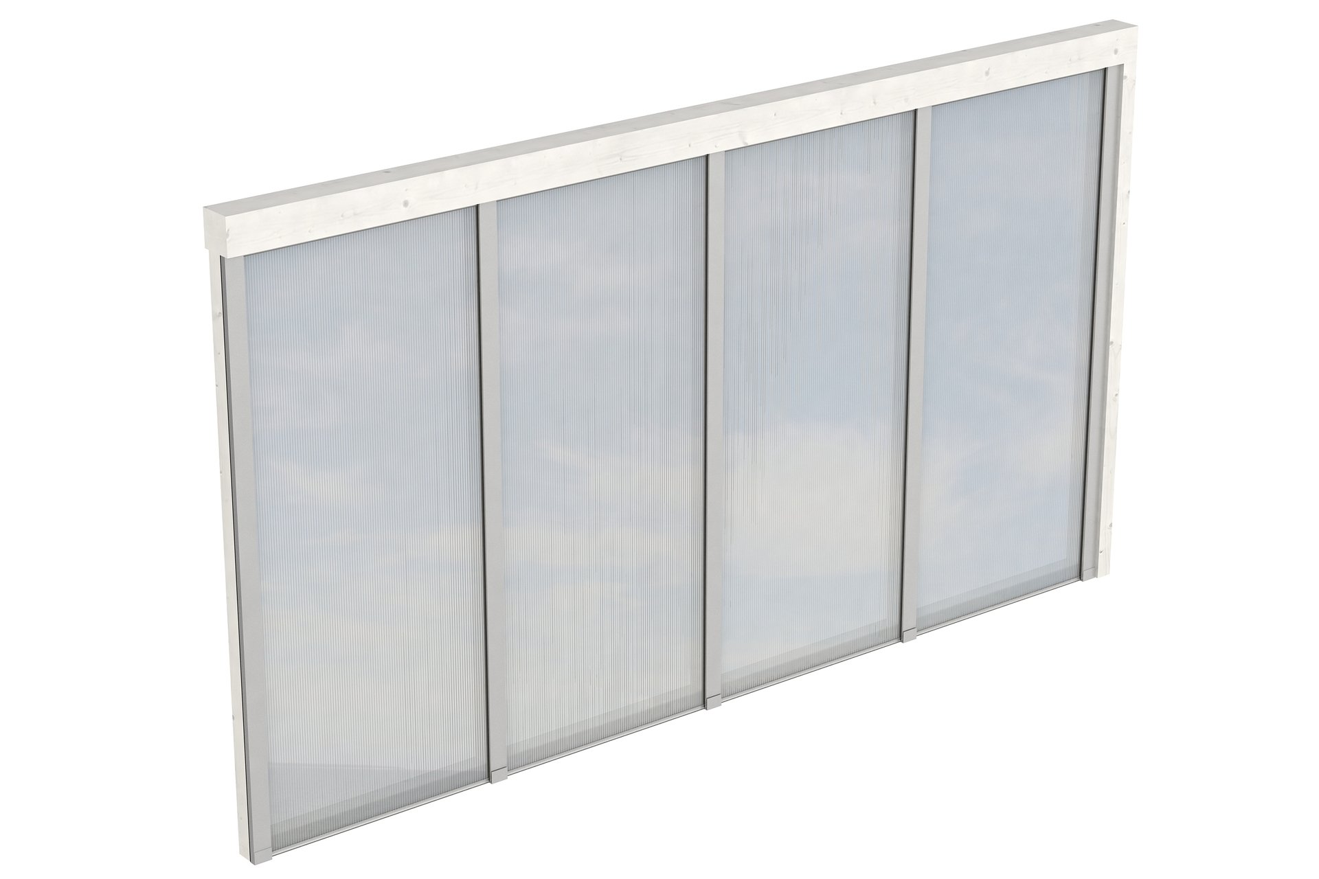 Die praktische SKAN HOLZ Seitenwand aus Konstruktionsvollholz mit 10 mm starken Doppelstegplatten aus Polycarbonat eignet sich für SKAN HOLZ Terrassenüberdachungen (Wandanbau) aus Leimholz mit einer Tiefe von 400cm und 389cm.