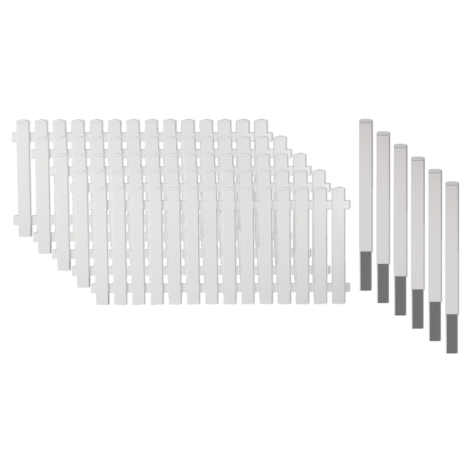 Kunststofflattenzäune sind ideal für die Gestaltung mit einem weißen Zaun. Sparen Sie sich das ewige Streichen, von ihrem Holzzaun! Die Lexington-Serie müssen sie in Zukunft nur noch putzen. Der hochwertig verarbeitete PVC-Kunststoff in weiß hat eine glatte Oberfläche, so dass Schmutz nur schwer hängen bleiben kann. Die Elemente werden fertig montiert geliefert, so dass die Vorbereitungszeit für die Montage minimiert wird. Komplettset aus hochwertigem PVC-Kunststoff5 KS-Lattenzäune 180 x 80 cm6 Aluminiumpfosten 9 x 9 x 150 cm mit KS-Hülleinkl. Befestigungselementen und Pfostenkappen