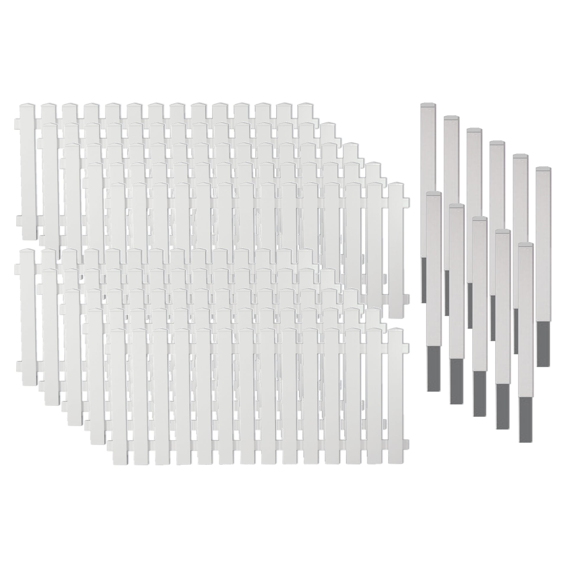 Kunststofflattenzäune sind ideal für die Gestaltung mit einem weißen Zaun. Sparen Sie sich das ewige Streichen, von ihrem Holzzaun! Die Lexington-Serie müssen sie in Zukunft nur noch putzen. Der hochwertig verarbeitete PVC-Kunststoff in weiß hat eine glatte Oberfläche, so dass Schmutz nur schwer hängen bleiben kann. Die Elemente werden fertig montiert geliefert, so dass die Vorbereitungszeit für die Montage minimiert wird. Komplettset aus hochwertigem PVC-Kunststoff10 KS-Lattenzäune 180 x 80 cm11 Aluminiumpfosten 9 x 9 x 150 cm mit KS-Hülleinkl. Befestigungselementen und Pfostenkappen