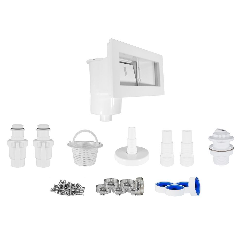 Der Breitmaulskimmeer mit Rücklaufdüse saugt das Oberflächenwasser des Pools an und fängt groben Schmutz und Fremkörper auf. So bleibt die Oberfläche frei von Blättern oder anderem Unrat.
