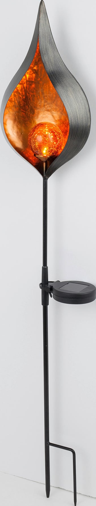 Die Solarleuchte Swante ist aus Metall und Glas gefertigt. Nach Schutzklasse IP44 ist sie ideal für den Außenbereich geeignet. Die LED ist bernsteinfarben, außerdem ist ein Dämmerungssensor und An-/Aus-Schalter enthalten. Die Höhe der Solarlampe beträgt ca. 90 cm. Die Lieferung erfolgt inkl. Batterie.