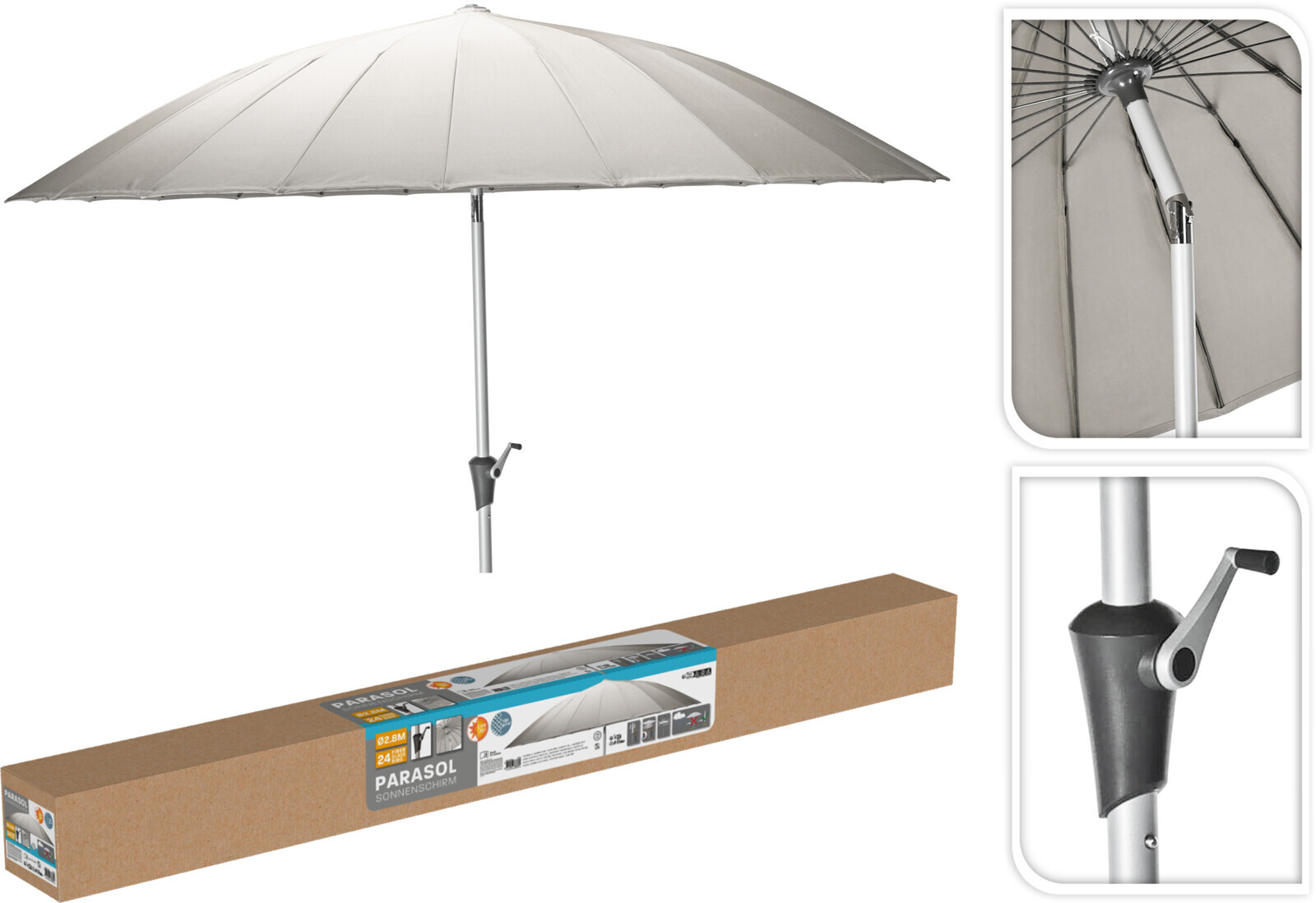 Sonnenschirm Shanghai 270 cm, Kurbel, Knick, taupe