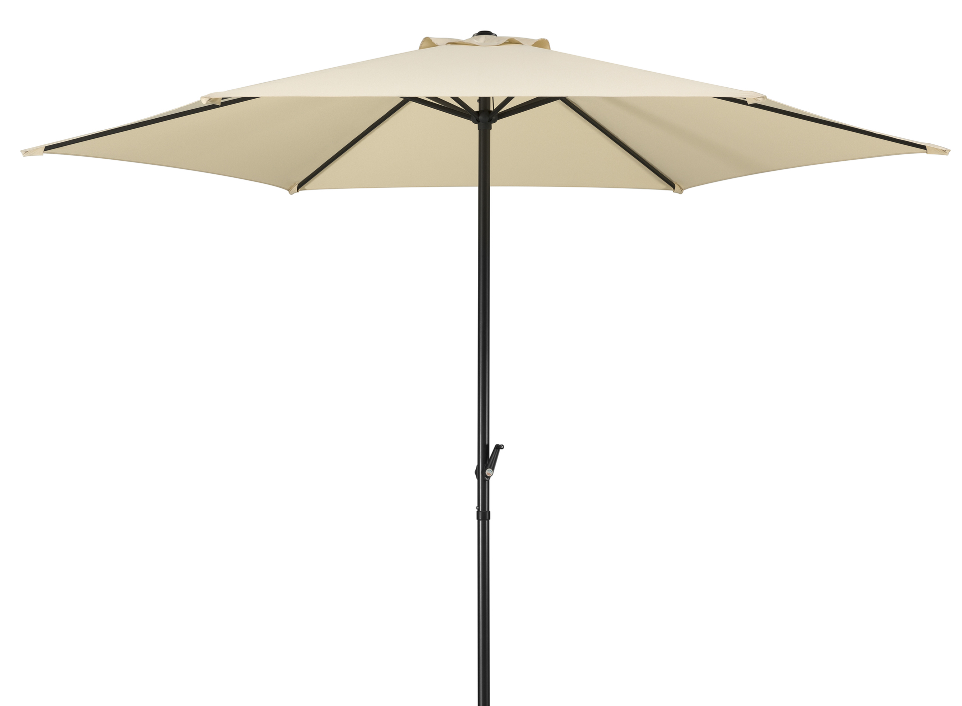 Der Schirm verfügt über eine Kurbel, mit der sich der Schirm ohne großen Kraftaufwand Öffnen und Schließen lässt.