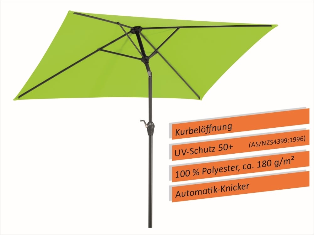 Der Schirm Bilbao ist ein rechteckiger Sonnenschirm mit ca. 210 x 130 cm. Damit hat er eine kompakte Größe und passt auf jede Terrasse.