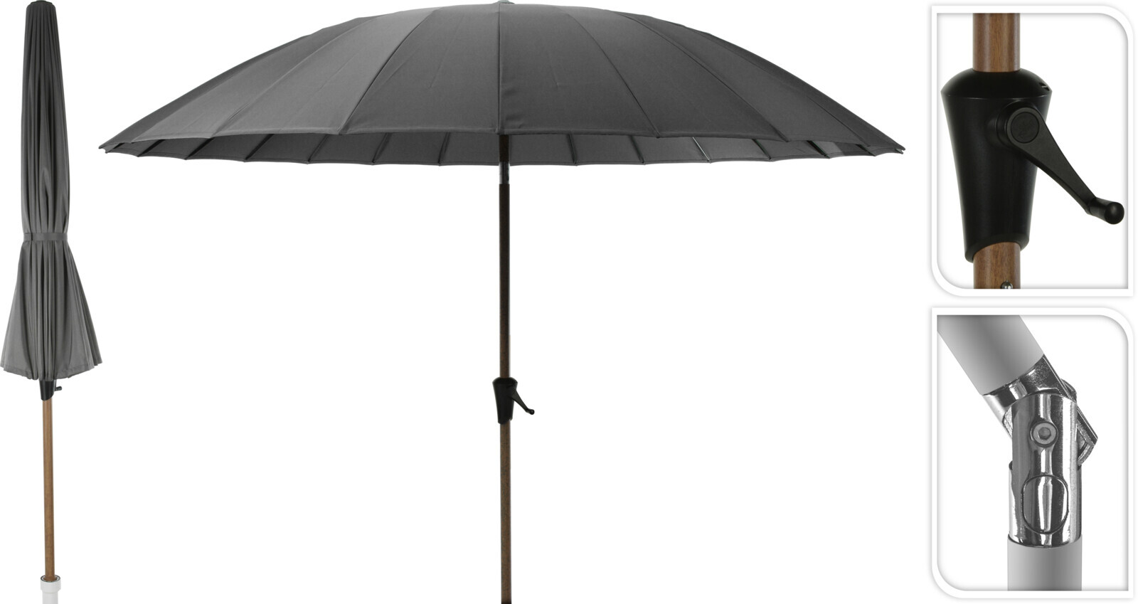 Sonnenschirm im asiatischen Stil dank 24 Streben, mit Kurbel und Kipfunktion, Holzständer