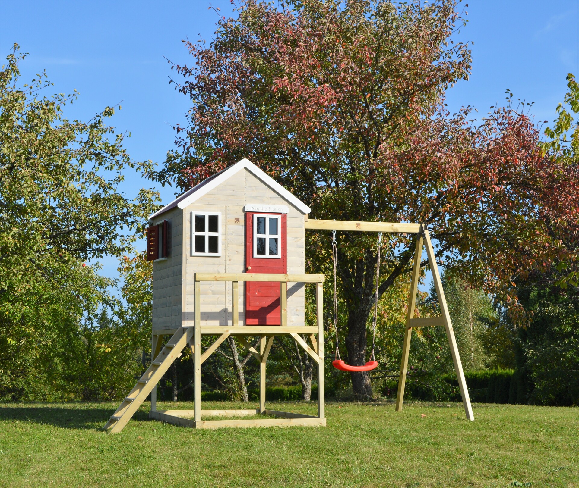 Die Wendy Toys Spielhäuser sind wahre Alleskönner und bieten eine Vielzahl an verschiedensten Spielmöglichkeiten: Veranda, Rutsche, Schaukelgerüst und — nicht zu vergessen — das Spielhaus. Hier können Ihre Kinder allerhand Abenteuer erleben und sich an der frischen Luft austoben. Gleichzeitig dient das Spielhaus auch als gemütlicher Rückzugsort nach ausgiebigem Toben und Spielen. Dank der zwei Fenster und auch der Tür samt kleinem Fenster fällt viel Tageslicht ins Innere des Hauses. Die Veranda an der Vorderseite (in 90cm Höhe) bietet zudem einen tollen Ausblick auf Garten und Spielgeschehen.
