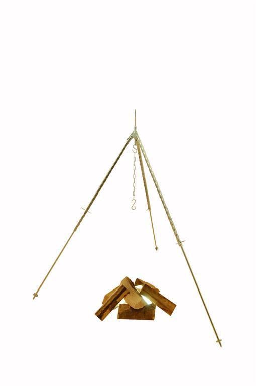 Ständer Teleskop eloxiert, mit Kette und Hacken zum Aufhängen eines Kessels, die Höhe beträgt ca.75-120cm.