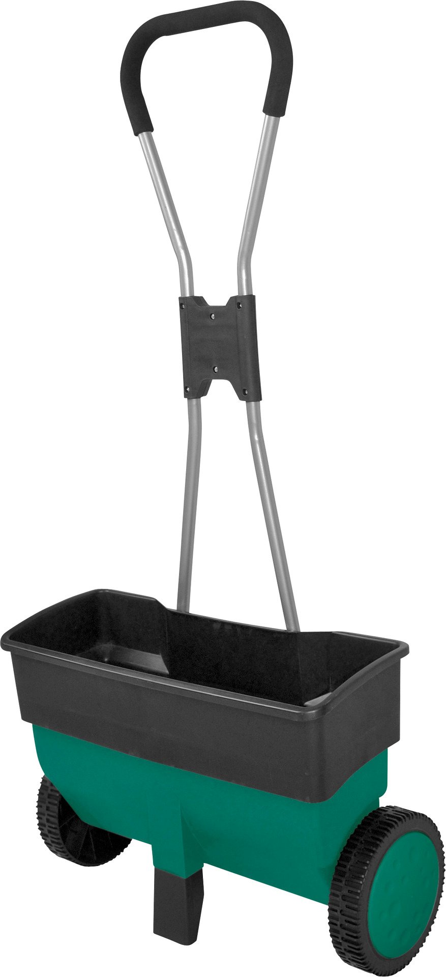 Universell einsetzbarer Streuwagen für das gleichmäßige Ausbringen von Dünger, Samen und Winterstreugut. Robust gefertigt.