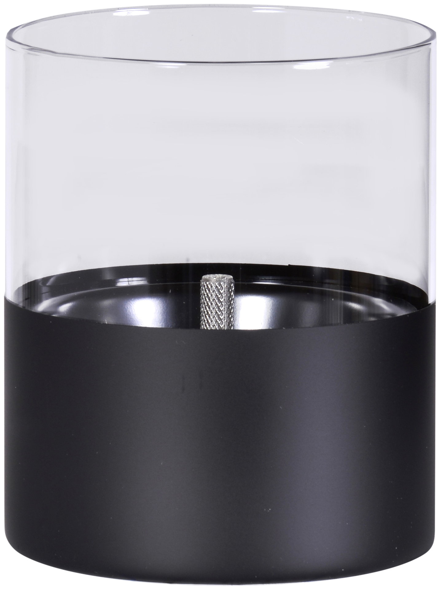 Tenderflame Tischfeuer “LILLY” – geruchloses, sicheres, rückbrand- und rußfreies Tischfeuer. Komplette Glasumfassung. Unterer Teil beschichtet in schwarz. Der patentierte Edelstahldocht erlaubt im Zusammenspiel mit dem 250 ml Tank eine Brenndauer von bis zu 9 Stunden.