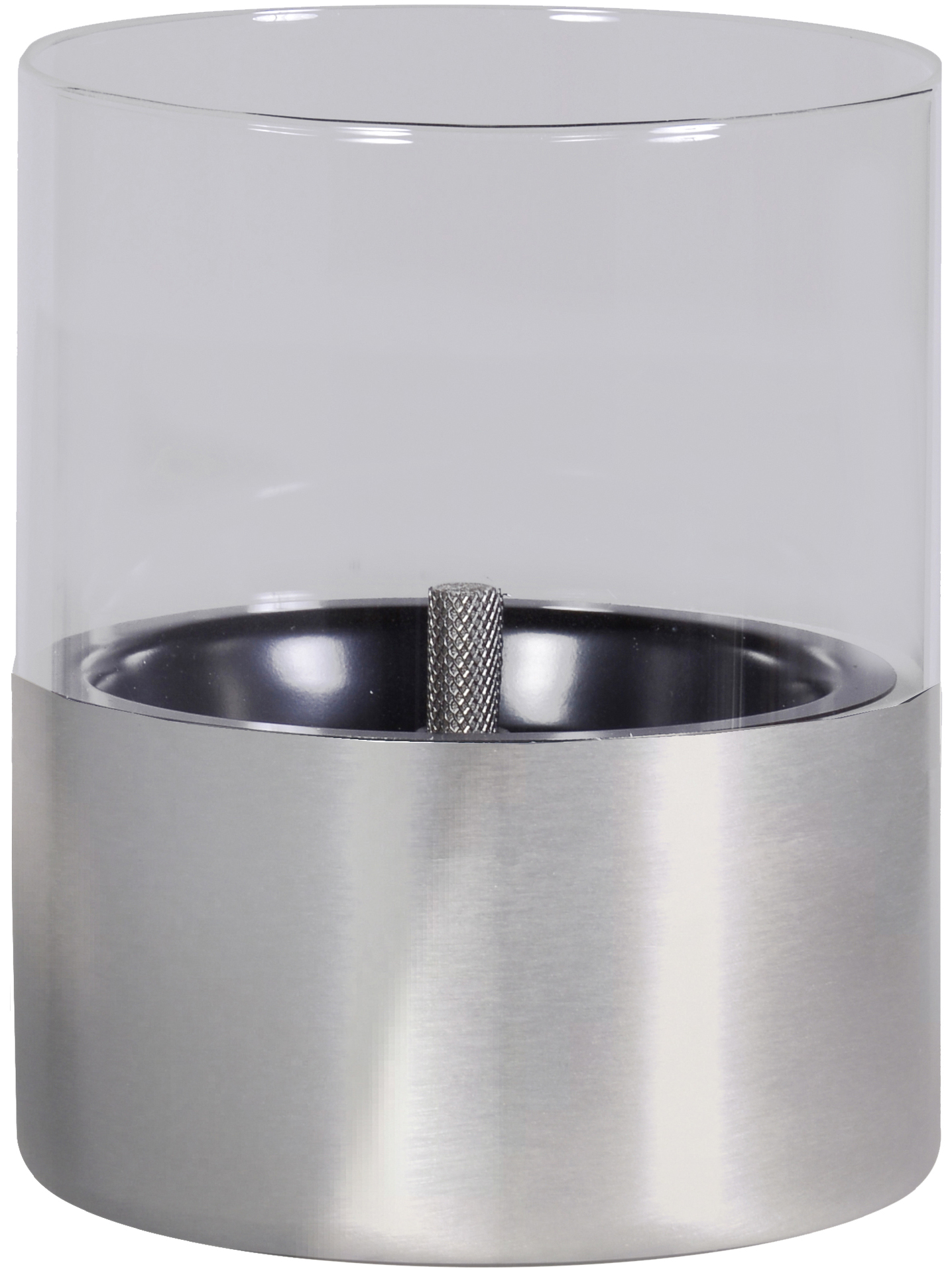 Tenderflame Tischfeuer “LILLY” – geruchloses, sicheres, rückbrand- und rußfreies Tischfeuer. Komplette Glasumfassung. Unterer Teil beschichtet in silberfarben. Der patentierte Edelstahldocht erlaubt im Zusammenspiel mit dem 250 ml Tank eine Brenndauer von bis zu 9 Stunden.