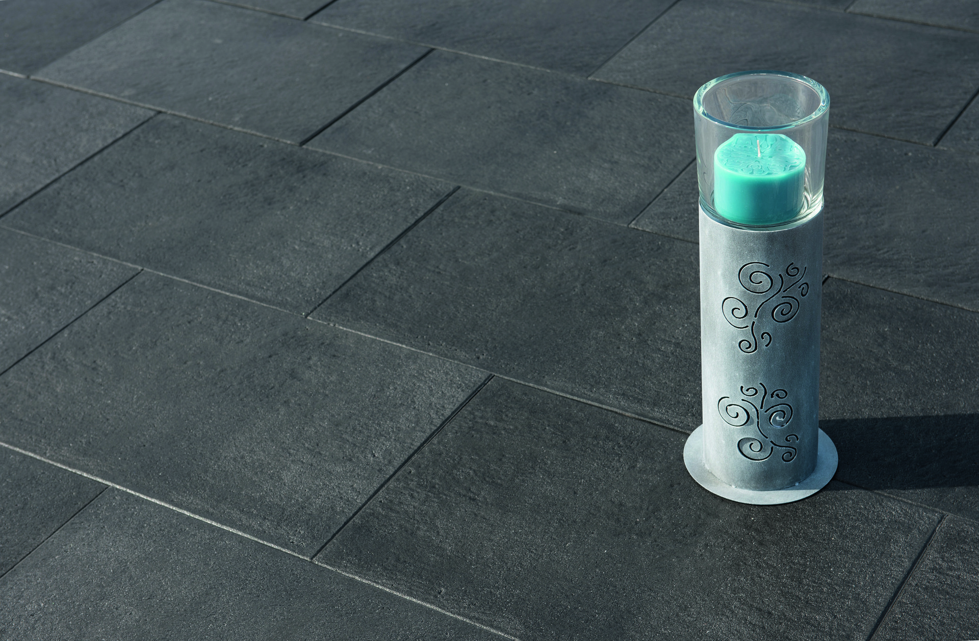 Lebhaft geflammt oder vornehm dunkelgrau: die Oberfläche der Cuneo Platten ist leicht strukturiert.