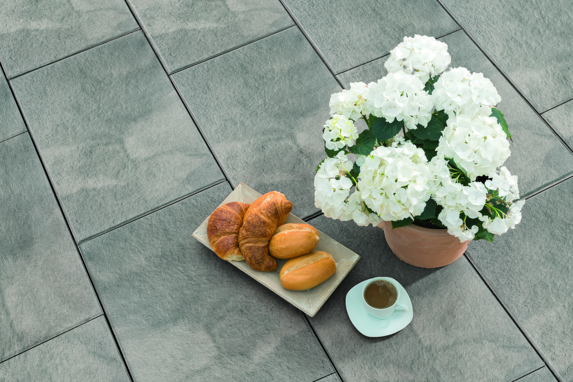 Lebhaft geflammt oder vornehm dunkelgrau: die Oberfläche der Cuneo Platten ist leicht strukturiert.