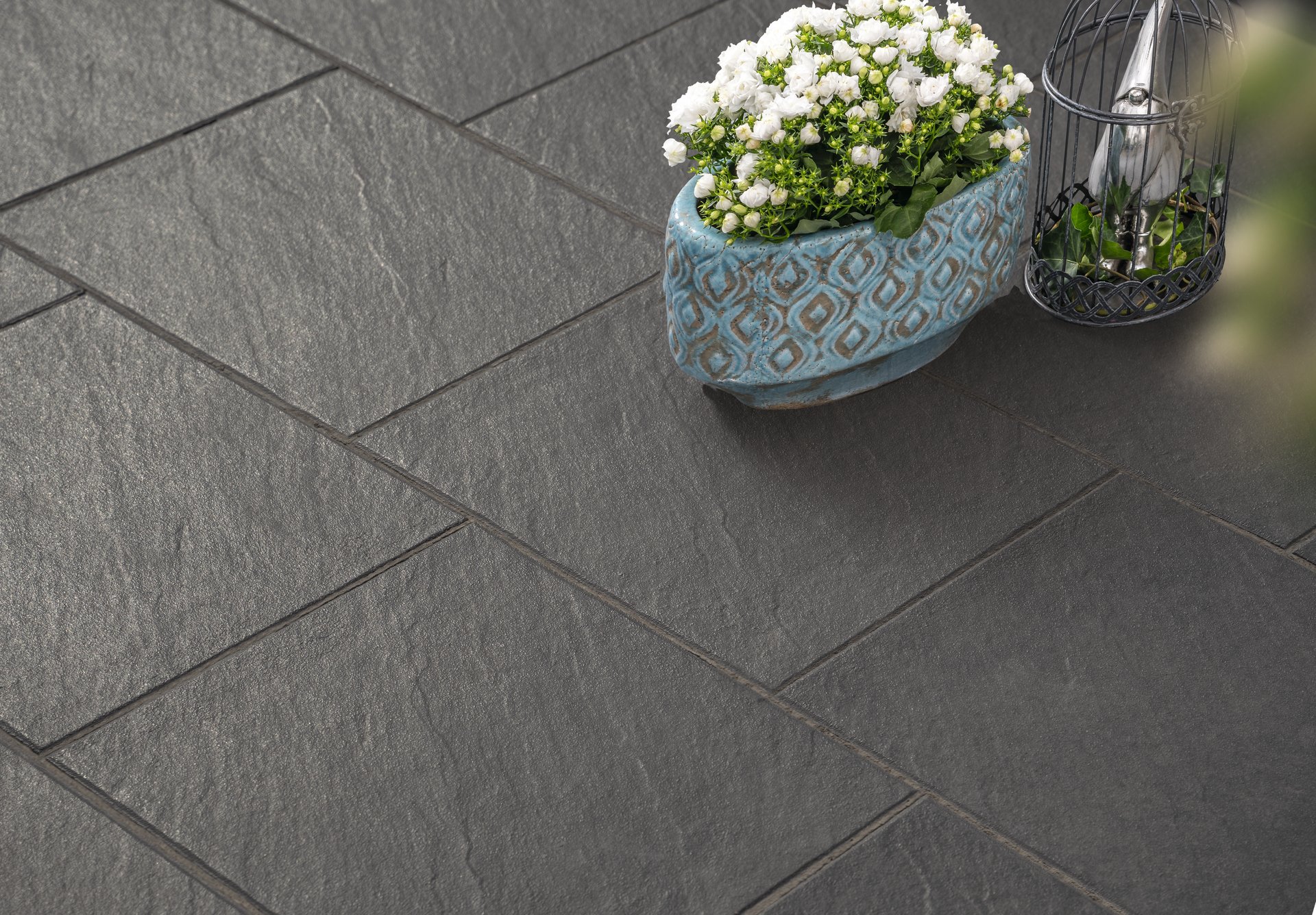 Verleihen Sie Ihrer Terrasse einen Hauch von Eleganz mit den hochwertigen Prades Terrassenplatten. Perfekt für stilvolle und langlebige Außenbereiche! Die Prades Platten beeindrucken durch ihre feine, relieffartig strukturierte Oberfläche, die die natürliche Anmutung von Schiefer perfekt imitiert. Mit einer ruhigen Farbgebung und detaillierter Struktur fügen sich die Platten harmonisch in jede Umgebung ein und schaffen ein zeitloses Ambiente. Diese besondere Bearbeitung verleiht den Platten nicht nur eine edle Optik, sondern sorgt auch für eine erhöhte Langlebigkeit und Widerstandsfähigkeit. Der Basis-Schutz der Oberfläche durch eine lösemittelfreie Beschichtung gewährleistet eine hohe Farbbeständigkeit und schützt die Platten vor Witterungseinflüssen.