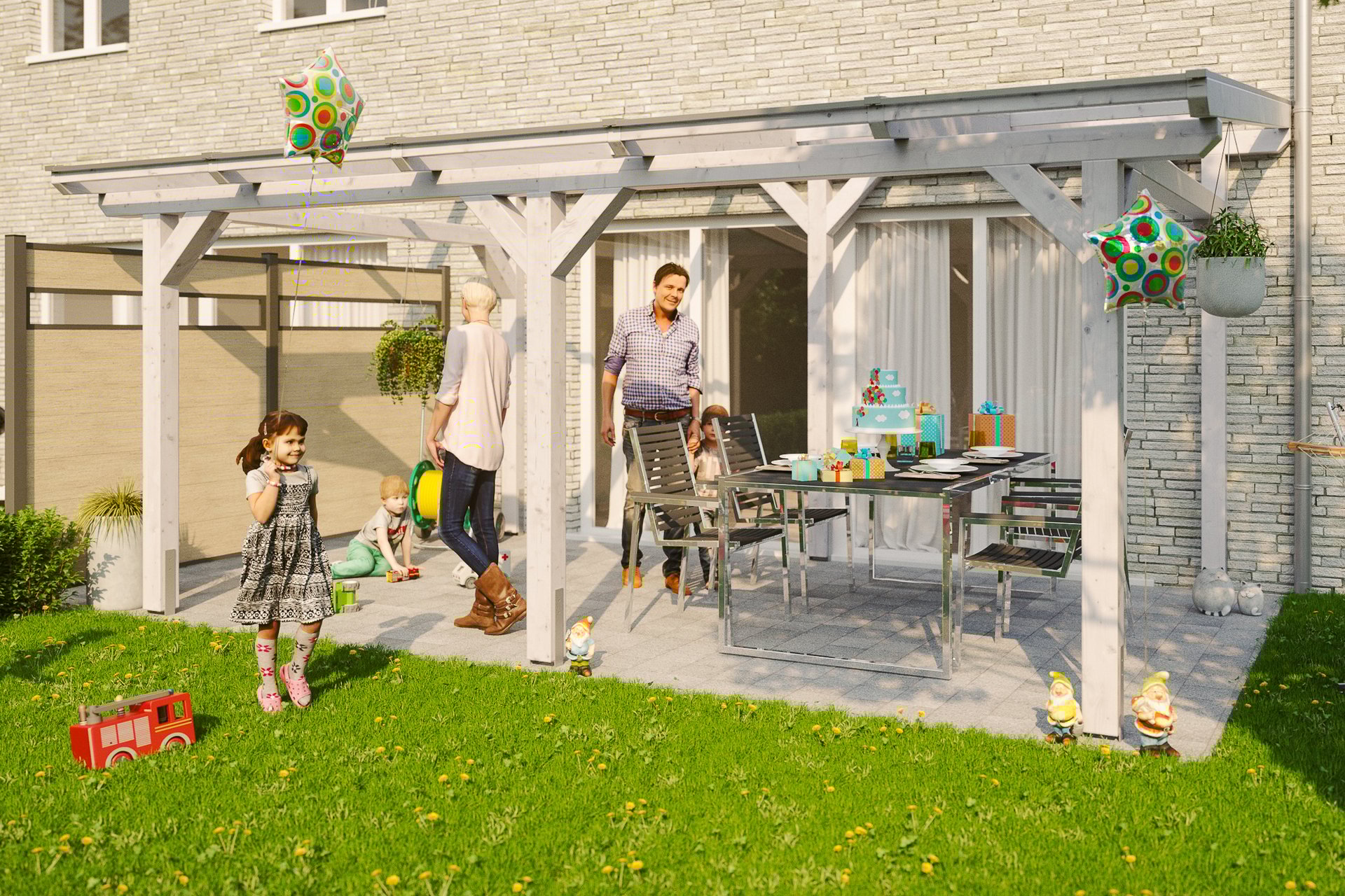 Die Wandmontage einer Terrassenüberdachung ist an Ihrer Hausfassade nicht möglich? Kein Problem, denn die Terrassenüberdachung Siena ist freistehend! Es ist keine Montage an Ihrer Hauswand notwendig.