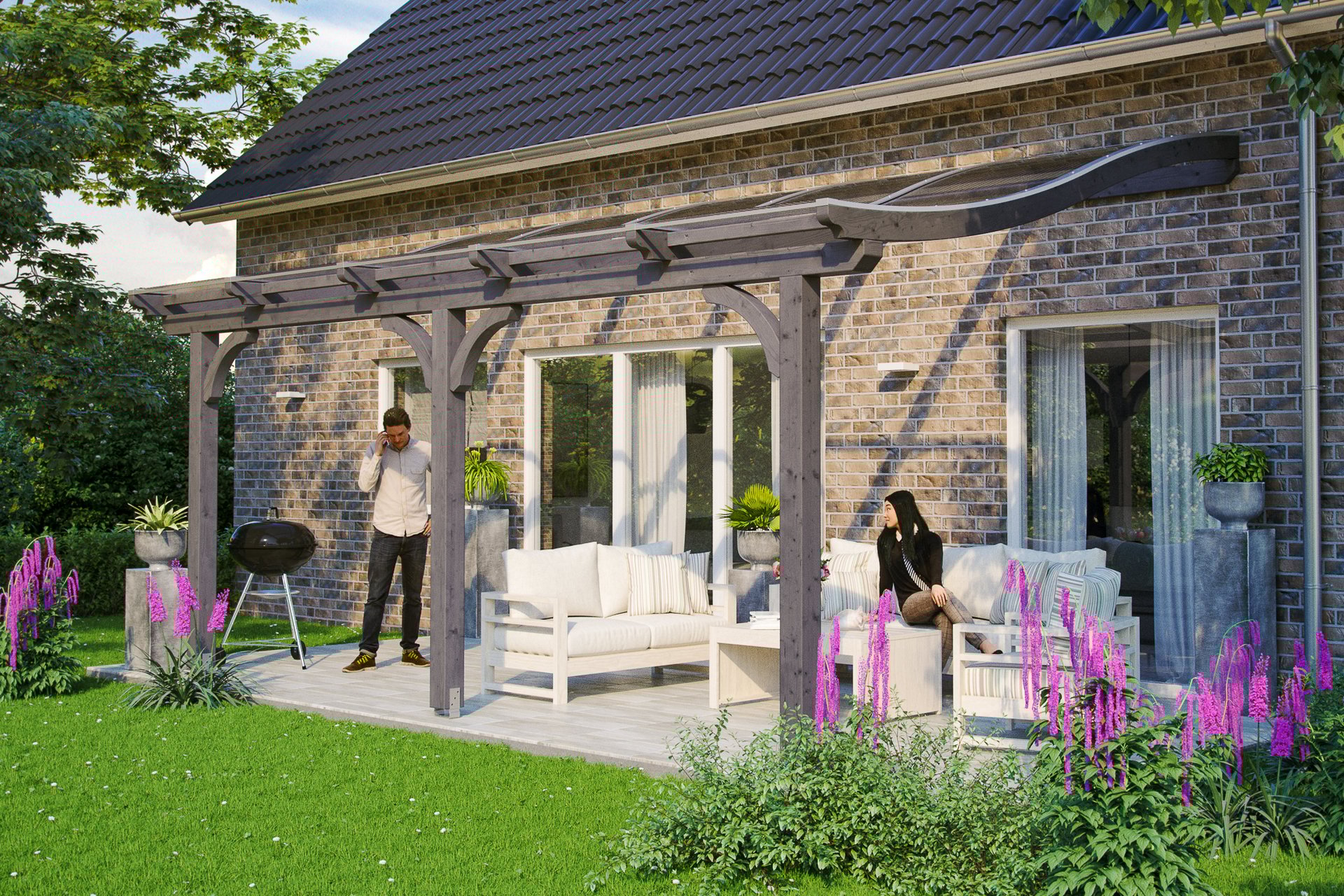 Die Dacheindeckung besteht aus stabilen, 10 mm dicken Polycarbonat Doppelstegplatten. Die Oberseite ist mit einer UV-reflektierenden Schicht versehen. Befestigt werden diese durch hochwertige Aluminium-Profile mit EPDM-Lippendichtungen.