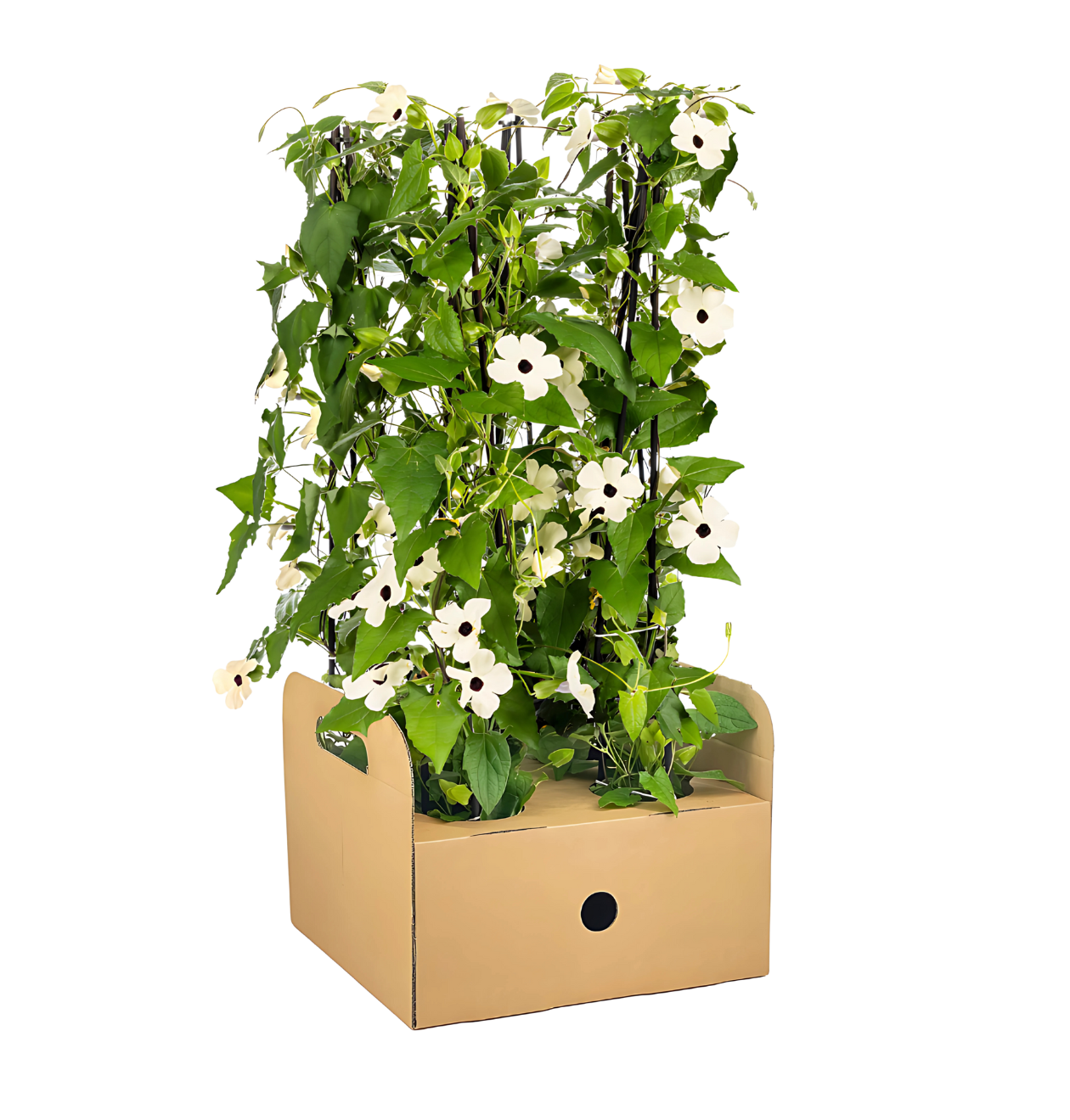 Die Thunbergia alata „Sunny Susy White“ ist eine edle, aber dennoch pflegeleichte Möglichkeit, deinen Außenbereich zu verschönern. Bei uns vor allem bekannt als Schwarzäugige Susanne, begeistert diese schnellwachsende Kletterpflanze mit ihren strahlend weißen Blüten, die durch das typische dunkle Auge in der Mitte einen besonders intensiven Kontrast bilden. Diese elegante Farbwirkung, kombiniert mit ihrem dichten, rankenden Wuchs, macht sie ideal für Pergolen, Spaliere, Balkonkästen und Hängeampeln. Die Sorte „Sunny Susy White“ verleiht Balkon und Terrasse eine frische, helle Note – und schafft auch auf kleinen Flächen eine sommerlich-blühende Atmosphäre mit stilvollem Charakter.