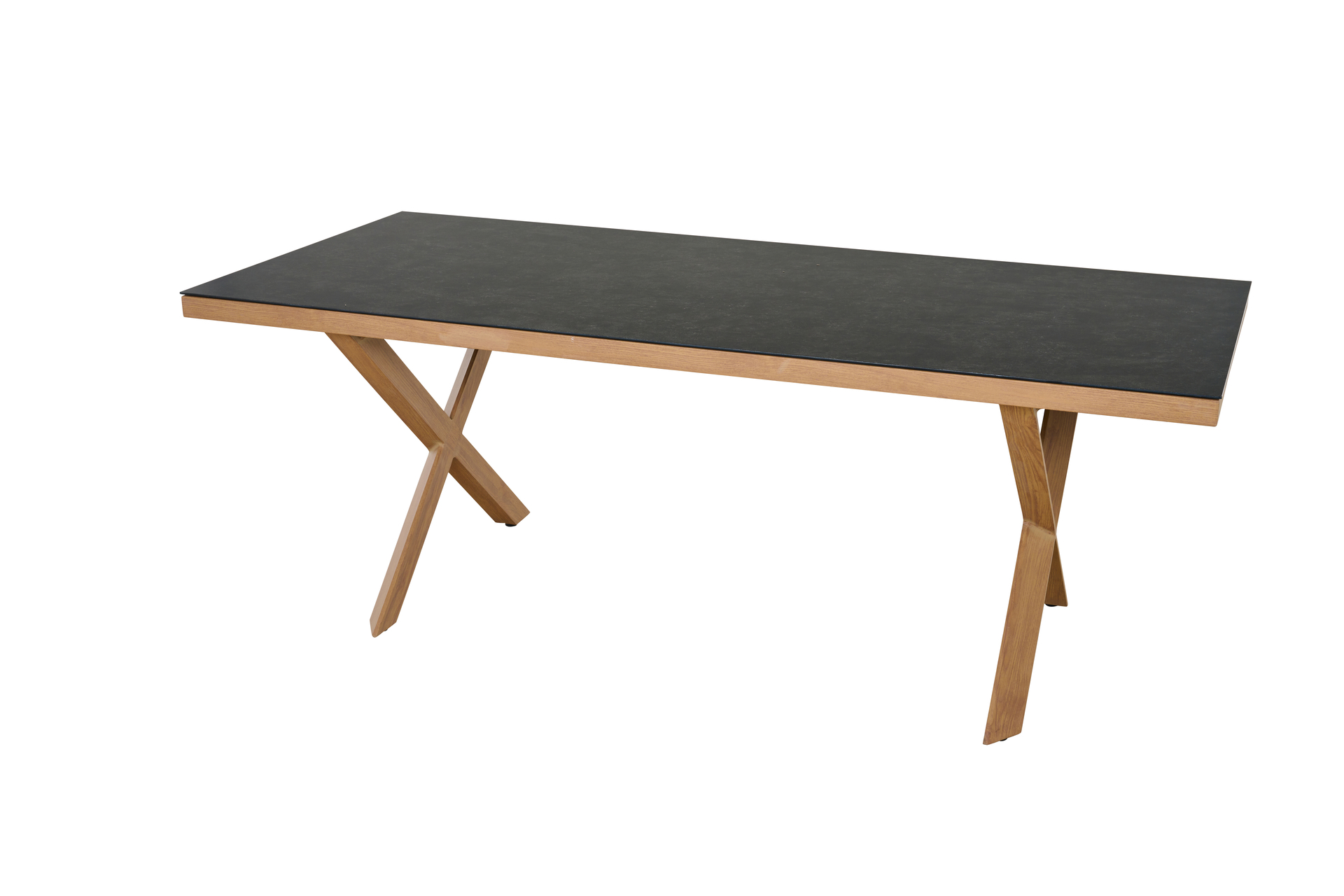 Dining Tisch CATANIA, 200x90x74 cm, Gestell aus Aluminium foliert in teaklook, Tischplatte aus Glas Keramikpulver beschichtet in dark concrete, 5mm stark