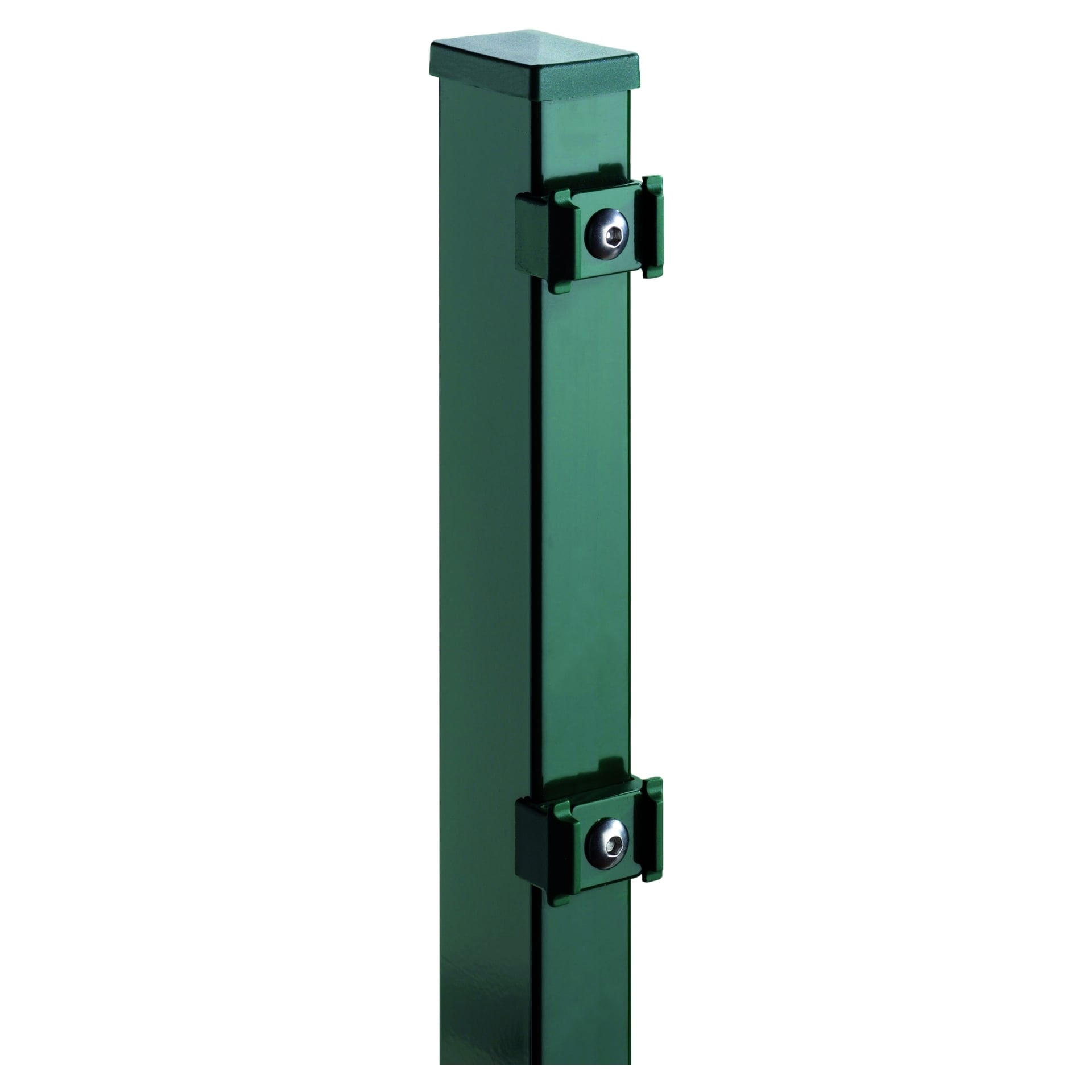 TOM-Zaunpfosten: Rechteckstahlrohr 60 x 40 mm inkl. Zaunhalter und Kunststoffkappe mit Halteplättchen und Innensechskantschraube, zum Einbetonieren, verzinkt und/oder pulverbeschichtet grün (RAL 6005) oder anthrazit (RAL 7016)