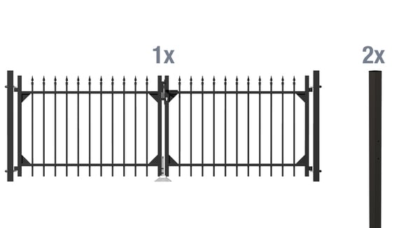 1 DoppeltorChaussee, ohne Pfosten, Aluminium, matt schwarz, 3010×1000, 2 Klobenpfosten Chaussee, Circle, Aluminium, schwarz, zum Einbetonieren89x89/1600