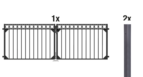 1 DoppeltorCircle, ohne Pfosten, Aluminium, matt schwarz, 3010×1000, 2 Klobenpfosten Chaussee, Circle, Aluminium, schwarz, zum Einbetonieren89x89/1600