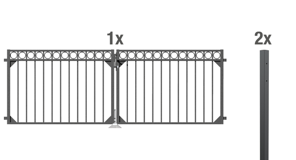 1 DoppeltorCircle, ohne Pfosten, Aluminium, anthrazit, 3010×1000, 2 Klobenpfosten Chaussee, Circle, Aluminium, anz, zum Einbetonieren89x89/1600