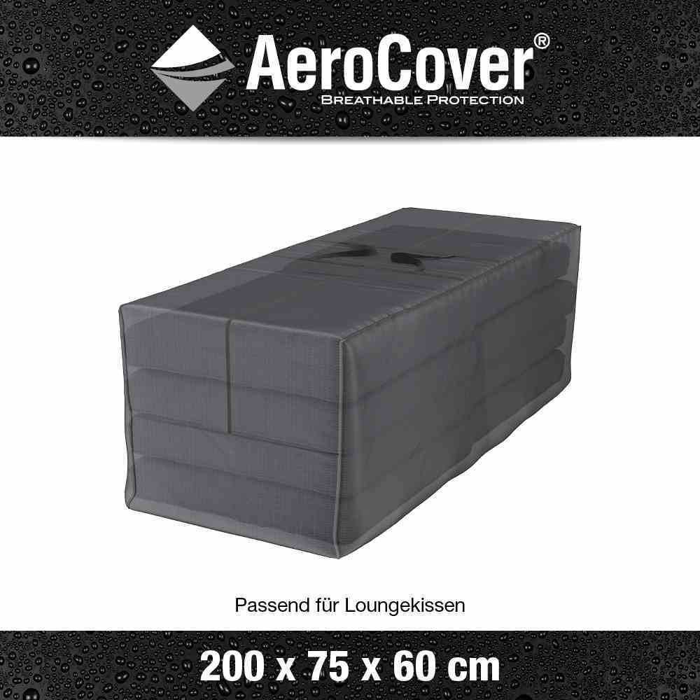 Tragetasche für Gartenmöbelkissen 200x75x60 cm. Mit verstärkten Griffen. Zwei Reißverschlüsse sorgen dafür, dass die Kissen leicht herauszunehmen sind. AeroCovers sind aus leichtem Ripstop Polyester mit einer integrierten, atmungsaktiven Membran hergestellt. Dank des dünnen Gewebes sind diese Hüllen besonders handlich in der Anwendung. Bei Nichtgebrauch sind sie platzsparend aufzubewahren und nehmen sehr wenig Platz ein. Da die Reißverschlüsse der Aufbewahrungstasche nicht wasserdicht sind, muss diese im Inneren aufbewahrt werden.