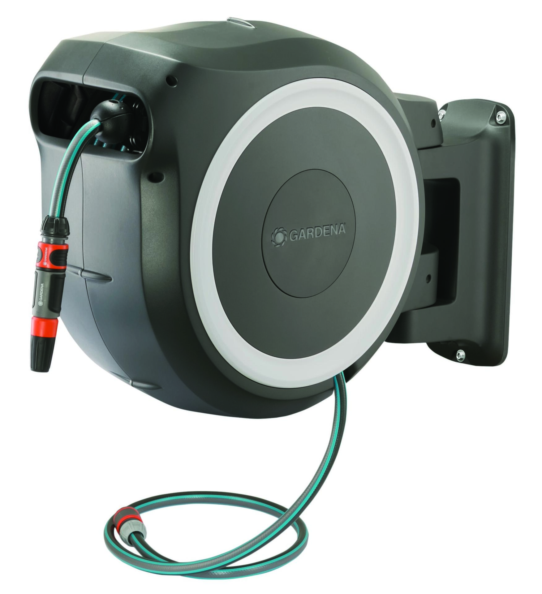 Mit der Wand-Schlauchbox RollUp M/L ist der Gartenschlauch sofort einsatzbereit und nach der Bewässerung schnell und ohne zu verknoten verwahrt, geschützt vor Schmutz und Beschädigungen. Mit kurzen Arretierstopps kann der Schlauch auf die gewünschte Länge ausgezogen werden. Dank RollControl genügt ein kurzer Zug am Schlauch und er wird mit gleichmäßiger Geschwindigkeit und sicher automatisch wieder aufgerollt. Die Wandhalterung ist um 180° schwenkbar, mit praktischer Halterung zum Aufbewahren von Spritzen oder Brausen. Die Wandschlauchbox ist frostsicher. Mit 25 m Qualitätsschlauch 13 mm (1/2″), Anschlussschlauch, Original Systemteilen und Spritze. Inklusive Wandhalterung mit Schrauben, Dübeln und Montagehilfe. Mit Diebstahlsicherung. 5 Jahre Garantie.