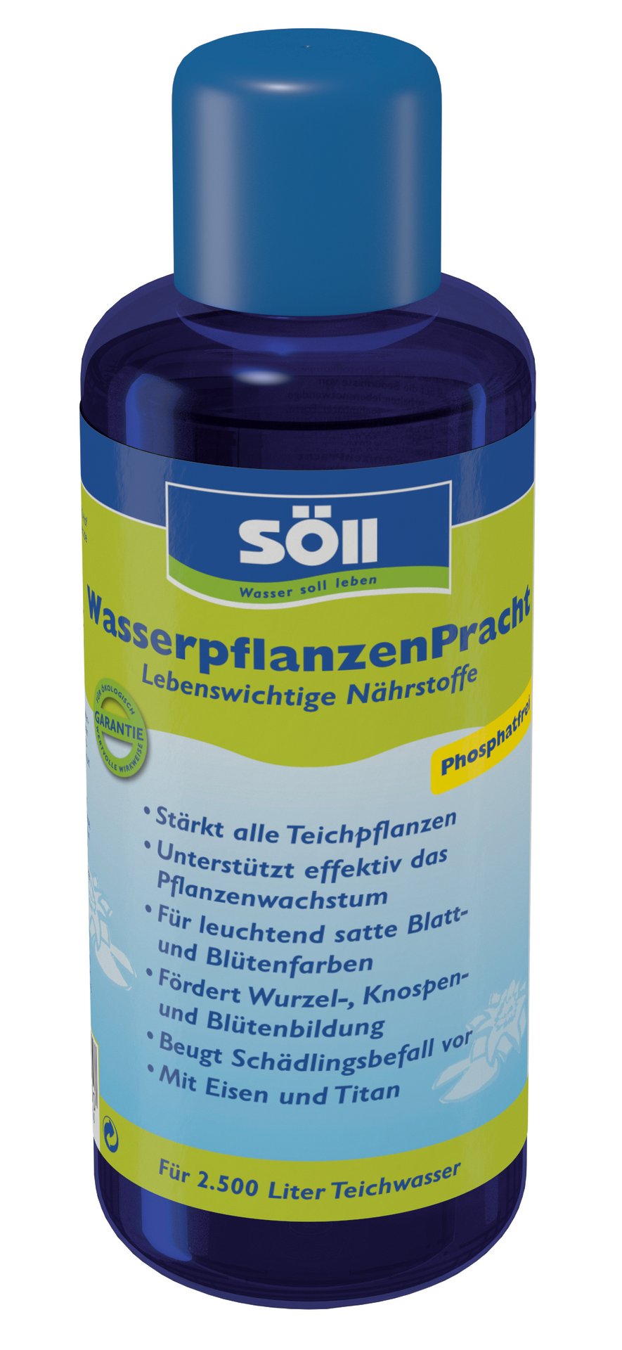 WasserpflanzenPracht enthält einen Nährstoffkomplex, der in seiner Zusammensetzung optimal auf die Bedürfnisse von Teichpflanzen abgestimmt ist. Teichpflanzen erhalten lebensnotwendige Makronährstoffe sowie Spurenelemente in sofort aufnehmbarer Form. WasserpflanzenPracht enthält Eisen, das Teichpflanzen für viele wichtige Funktionen benötigen und unterstützt so ihr optimales Wachstum. Frei von Phosphaten führt WasserpflanzenPracht nicht zu einer Überdüngung. Somit wird auch das Algenwachstum nicht gefördert. Wussten Sie schon? WasserpflanzenPracht wirkt sich positiv auf die ganze Pflanze – insbesondere auf Seerosen – aus. Sie entwickeln kräftige Blatt- und strahlende Blütenfarben. Die Blätter werden so kräftig, dass oft sogar ein Parasitenbefall verhindert wird.